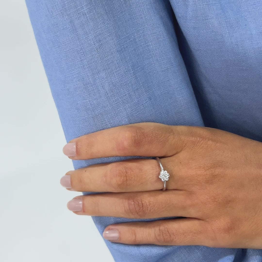 Este anel em prata 925 é uma joia que une delicadeza e sofisticação. Seu aro é destacado por um delicado arranjo de safiras, dispostos em formato chuveirinho que confere brilho e elegância à peça.
