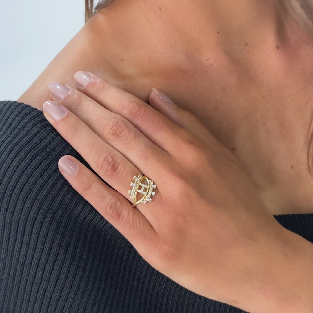 Este anel exclusivo em ouro 18K, feito com diamantes, apresenta um design contemporâneo em formato de olho, criando um efeito visual marcante. Você pode personalizá-lo com uma inicial, tornando-o ainda mais único e significativo. Ideal para complementar diferentes estilos e ocasiões, seja usado sozinho ou em combinação com outras joias.