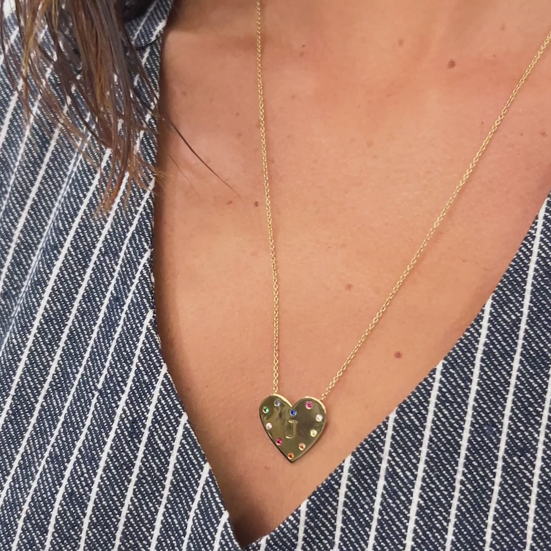 Este colar em prata traz o brilho e a alegria de pedras naturais em um design de coração. Com a opção de personalizar a inicial, o pingente é adornado com safiras, ametistas, topázios e muito mais, tornando esta peça um destaque em qualquer coleção de joias. Disponível em banhos de ouro amarelo, ródio ou ouro rosé, é uma peça cheia de charme e cor.