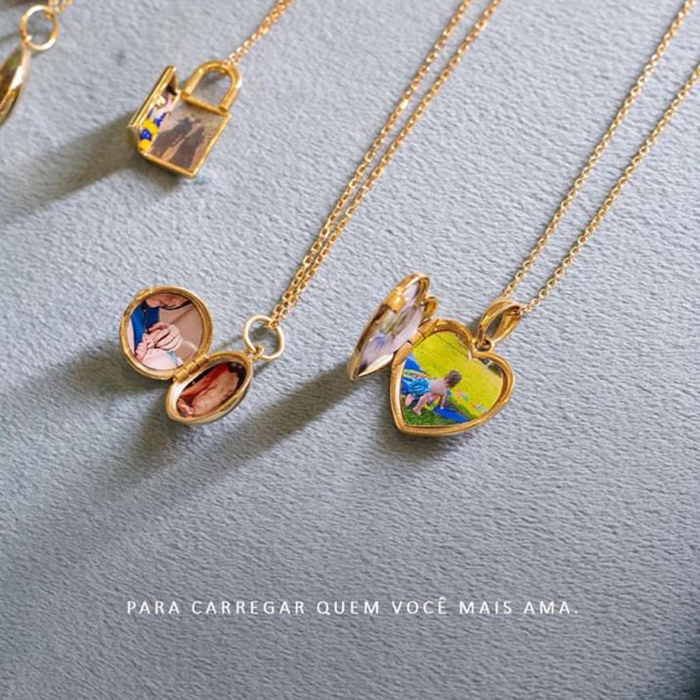 Dentro do relicário, você pode guardar as fotos de quem ama. Cada vez que abrir a joia, será lembrado dos momentos e de quem fazem seu coração bater mais forte. É uma forma de ter suas memórias sempre perto, onde quer que você vá.O Presente Ideal