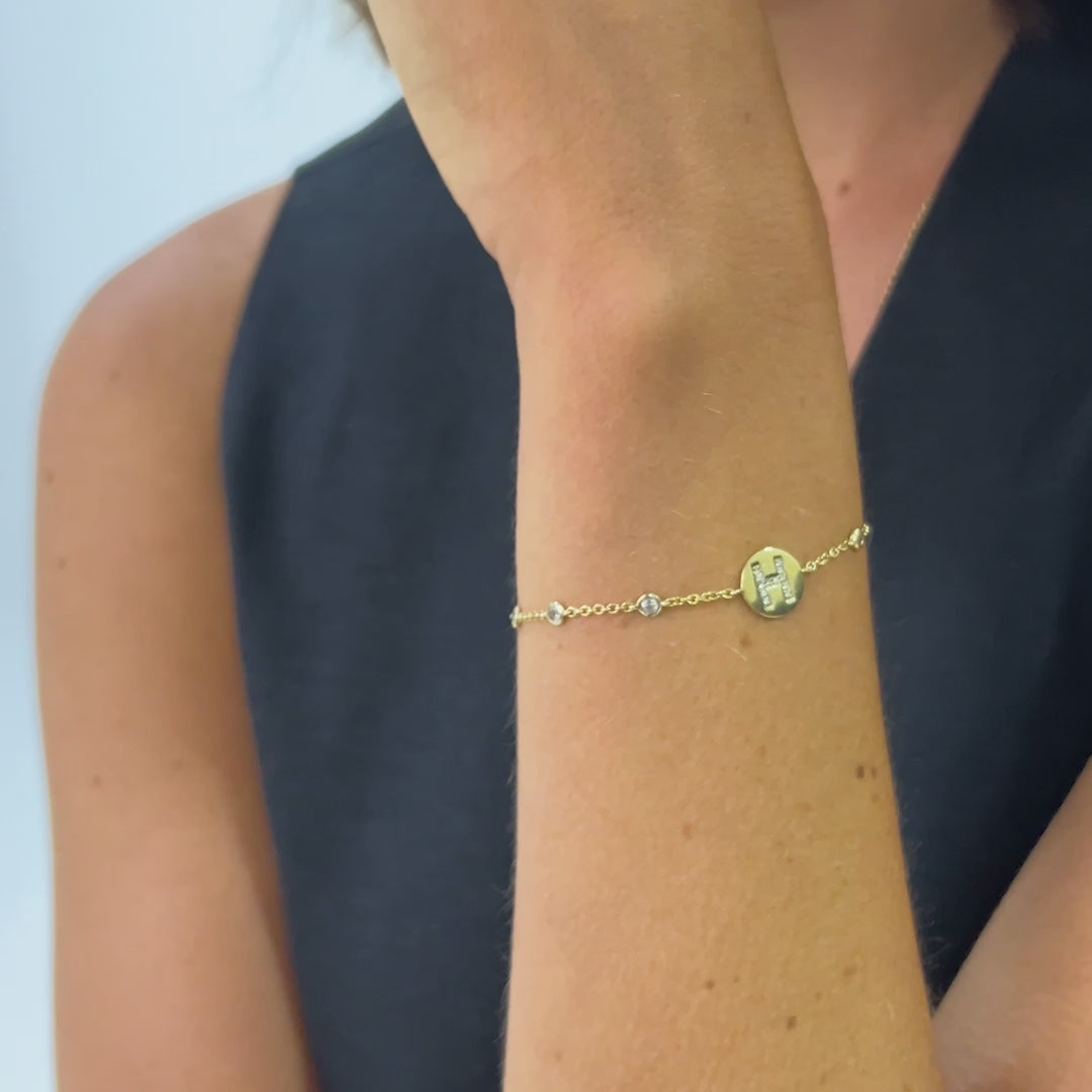 PULSEIRA MEDALHA INICIAL DE DIAMANTES - OURO 18k